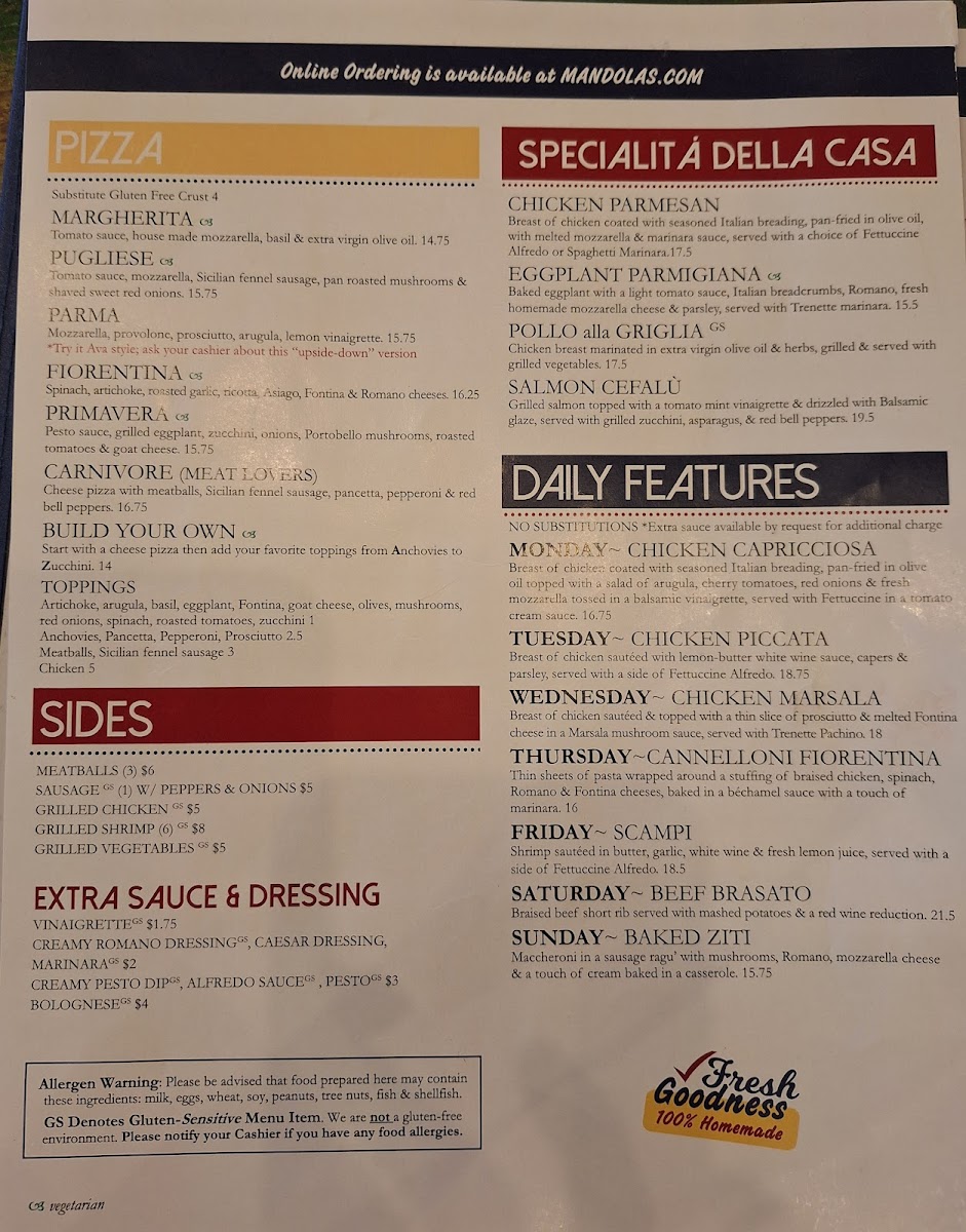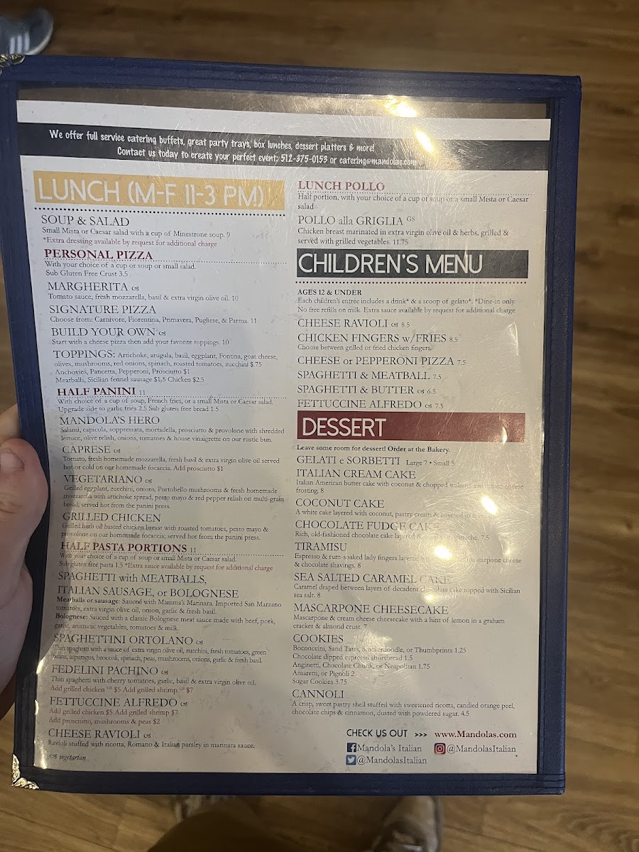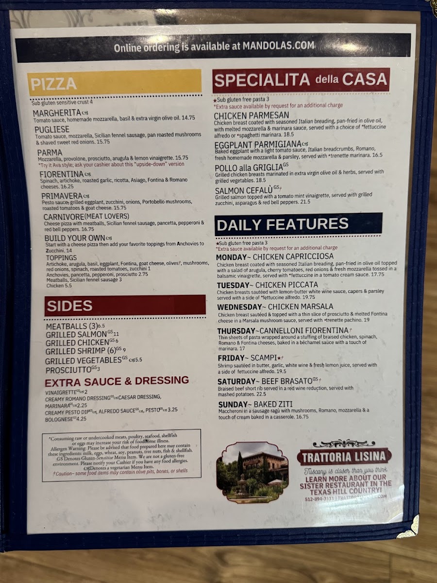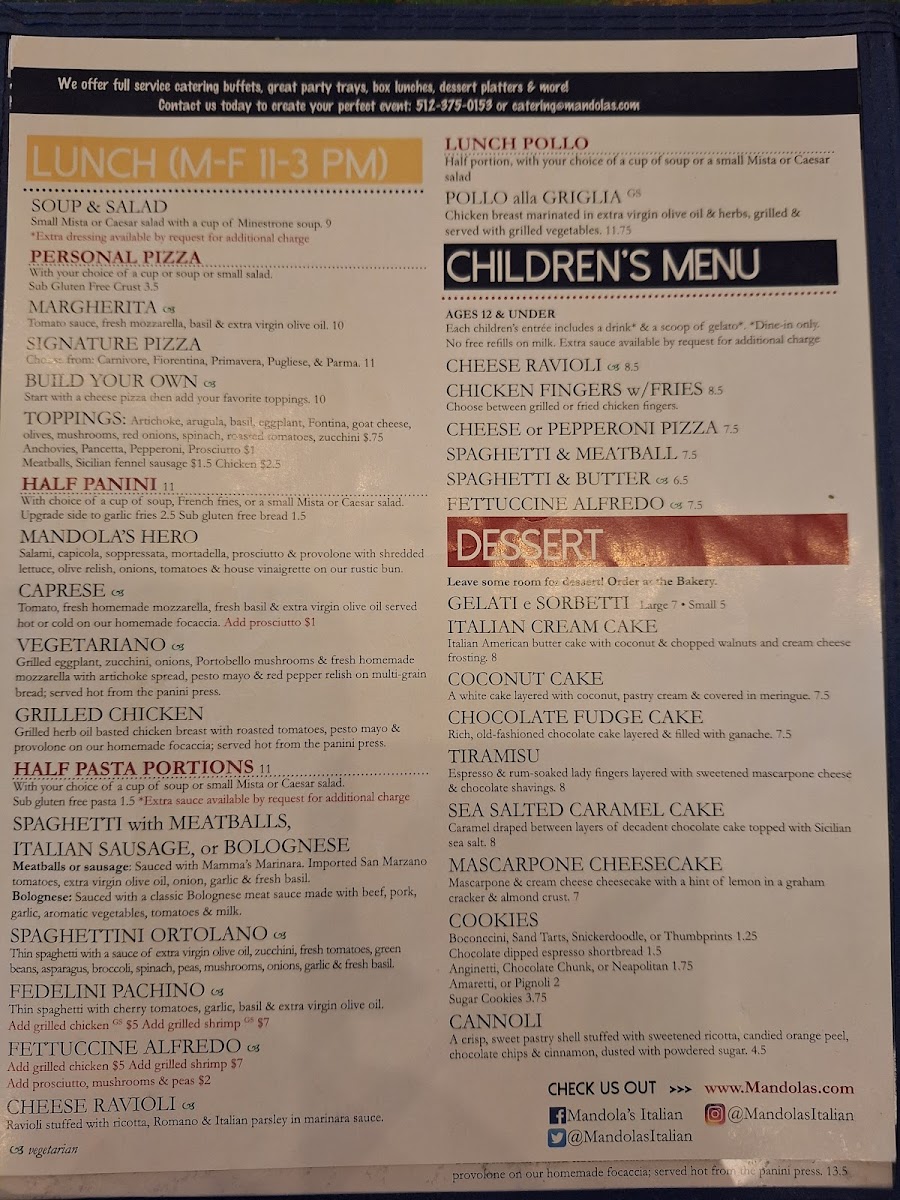 At Mandola's Italian Kitchen, the essence of Italian cuisine comes alive, offering a delightful mix of traditional dishes that tantalize the taste buds. Located in Austin, this gem exudes a warm, family-friendly atmosphere, perfect for both casual lunches and special gatherings. The menu boasts an array of options, from Signature Personal Pizzas—like the vibrant Primavera and classic Margherita—to comforting Lasagna and hearty Penne Bolognese.